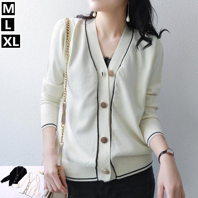 レディース ニット カーディガン リブ編み 厚手ニット ローゲージ 大きなボタン ゴールド セーター 長袖 ブラック ホワイト黒 白 ライン 秋 冬 春 :s609:sakura ファッション - 通販 - Yahoo!ショッピング
