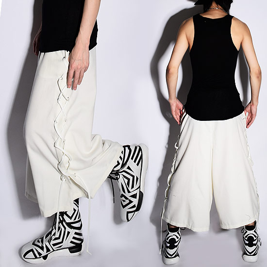 ガウチョ メンズ 袴パンツ モード系 ワイドパンツ ホワイト 白 変形 クロップドパンツ V系 ビジュアル系 韓国 お兄系 衣装|au PAY マーケット
